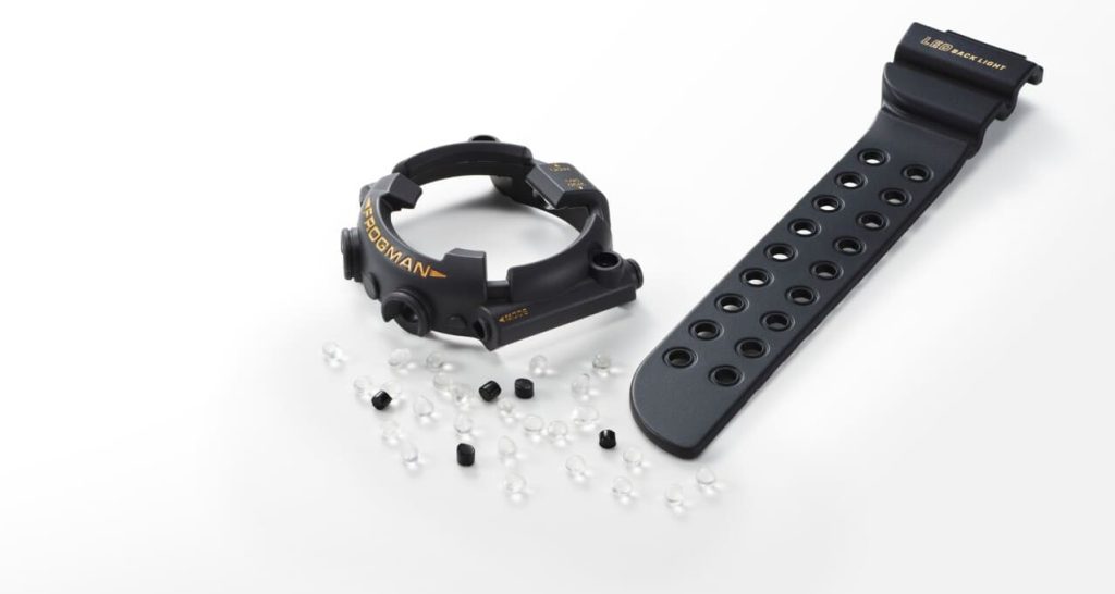 Los componentes extraídos de materiales de origen vegetal, una vez convertidos en resinas de biomasa, son entonces granulados y se utilizan para modelar los componentes del reloj, incluidos la parte frontal y posterior de la carcasa, y la correa del reloj. El uso de estos materiales refinados para el moldeo de los modelos ha permitido la elaboración de productos con una calidad consistente con la acostumbrada por una marca como G-SHOCK.