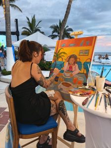 El componente artístico estuvo a cargo de la artista ecuatoriana Camila Romero, reconocida por su estilo contemporáneo que explora el color, la emoción y la identidad cultural. Durante la velada presentó tres obras inspiradas en la marca y desarrolló una pintura en vivo, convirtiendo el proceso creativo en parte de la experiencia para los asistentes.